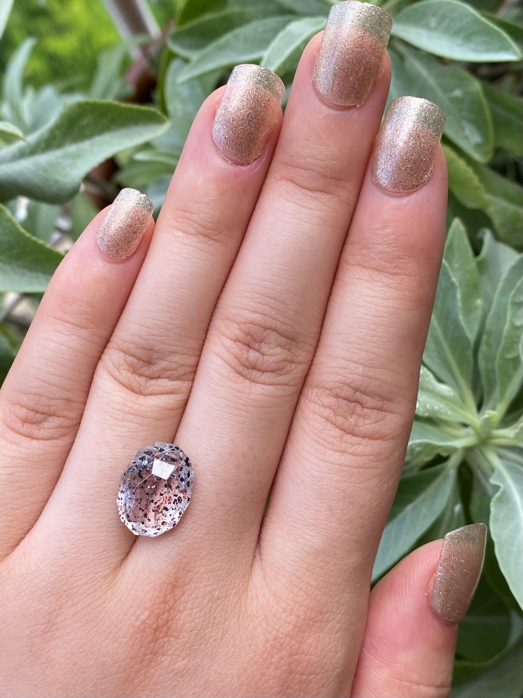 ハンドメイド作家さんや石好きさんたちに是非オススメしたい、透明感溢れる水晶の中にミックスカラーの鉱物の内包物が美しく、特徴的なスーパーセブンの裸石です。